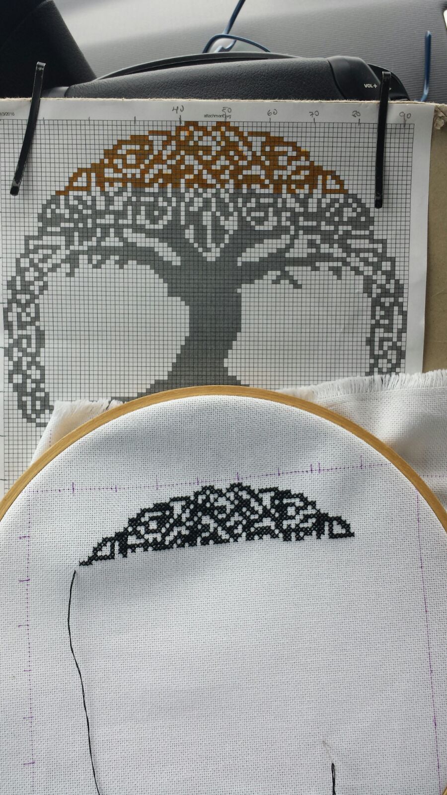 y esto es lo poco que avance... debo confesar que no estaba muy "inspirada" y no encontraba la postura correcta para bordar en el coche,. no se porque tenia el culo inquieto y todo me molestaba.. con lo que me decique a la lectura de un libro que llevaba mes y medio dando tumbos por el coche....